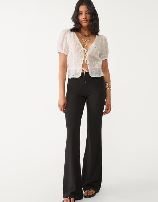 Stradivarius - Sorte bukser med ben med svaj i strik