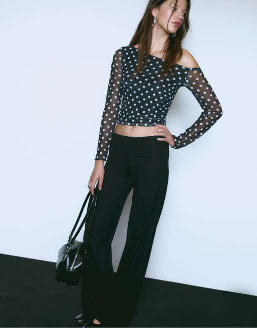 Stradivarius - Sorte bukser med foldet talje i mesh