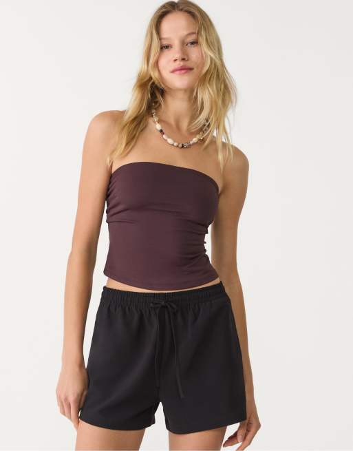 Stradivarius - Sorte elegante shorts med elastisk taljebånd