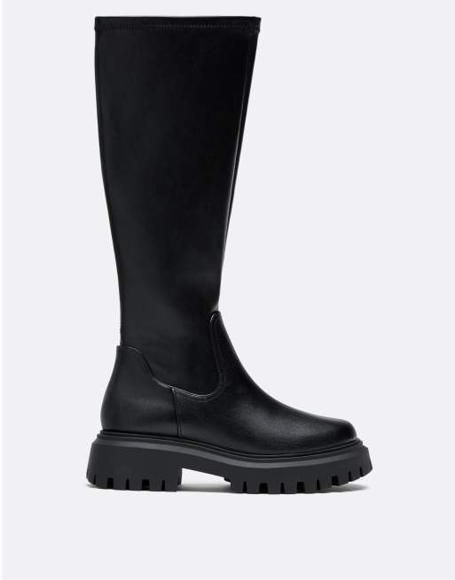 Stradivarius - Sorte flade knæhøje støvler