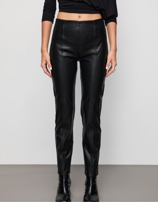 Stradivarius - Sorte leggings i imiteret læder
