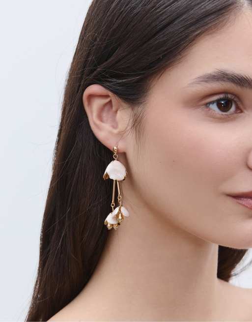 Stradivarius - Sæt med 2 par øreringe med ecrufarvede blomsterdetaljer