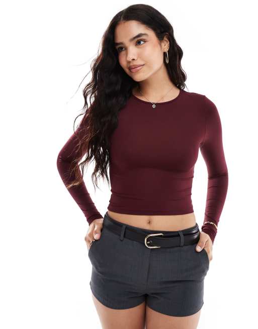 Stradivarius - STR - Bordeaux formgivende T-shirt med lange ærmer