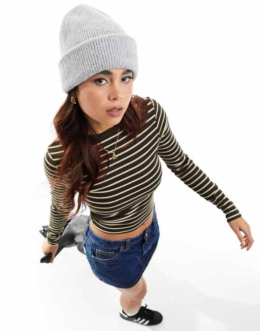 Stradivarius - STR - Brun stribet overdel med halsudskæring