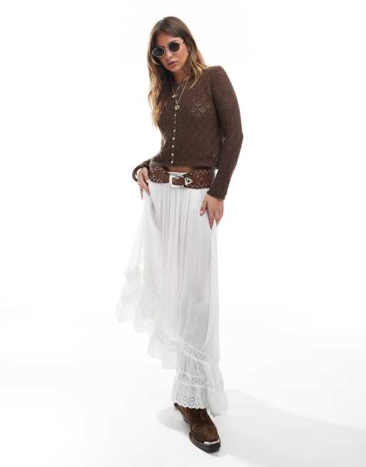 Stradivarius - STR - Ecrufarvet midinederdel med asymmetrisk kant