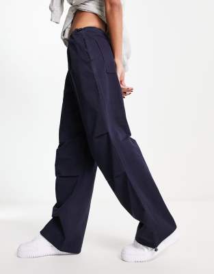 Stradivarius - STR - Oversized faldskærmsbukser i marineblå