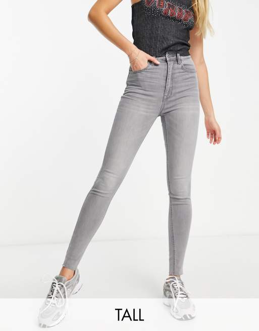 Stradivarius Tall - Grå skinny-jeans med superhøj talje