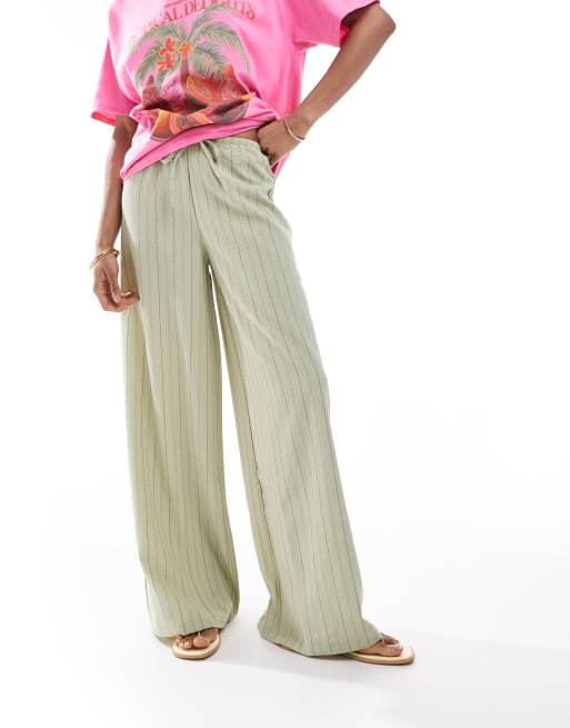 Stradivarius Tall - Kakigrønne og stribede bukser i hørlook med vide ben