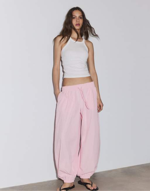 Stradivarius - Technical - Pastellyserøde faldskærmsbukser med ballonben