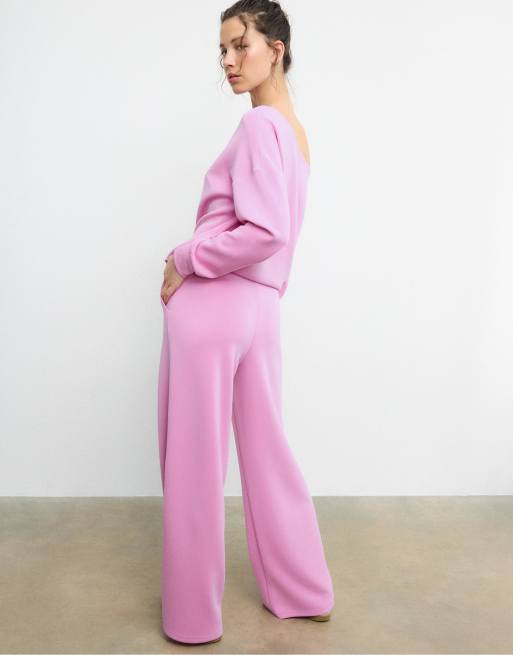 Stradivarius - Tyggegummipink blødt sweatsæt med synlig skulder