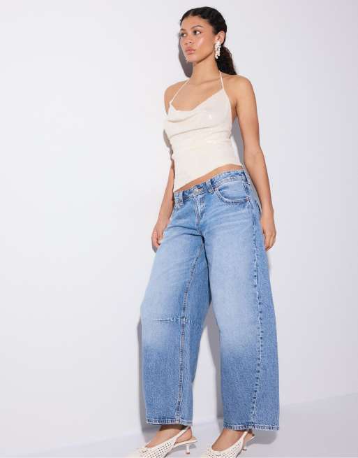 Stradivarius - Vaniljefarvet halterneck-top i pailletstof