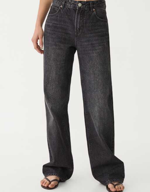 Stradivarius - Vasket sorte jeans med brede ben D92
