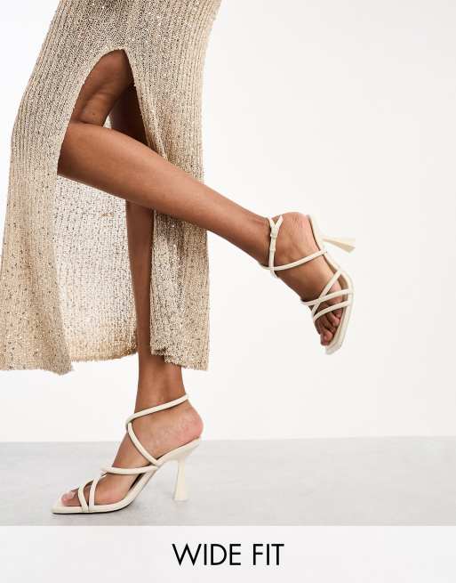 Stradivarius Wide Fit - Ecrufarvede højhælede sandaler med firkantet tå og smalle remme
