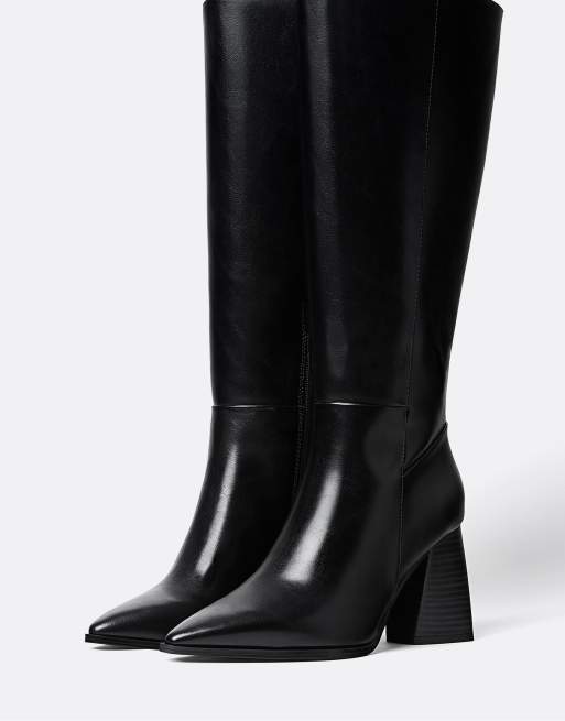 Stradivarius Wide Fit - Højhælede sorte støvler