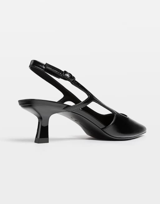 Stradivarius Wide Fit - Sorte sko med kitten-hæl og hælrem