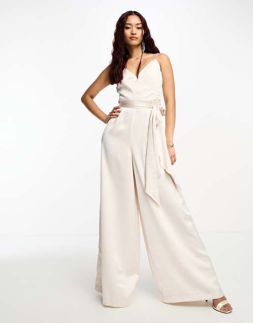 Style Cheat - Cremehvidt jumpsuit i satin med bindetalje