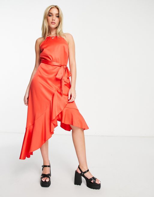 Style Cheat - Halterneck-midikjole med flæser i klar rød