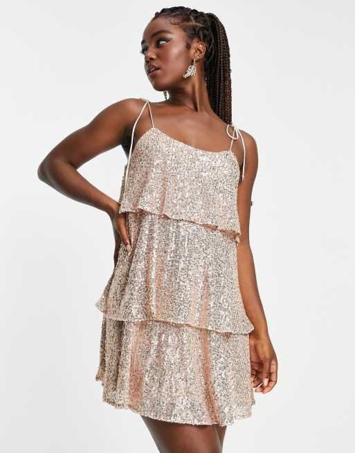 Style Cheat - Lagdelt minikjole med pailletter i champagnefarve