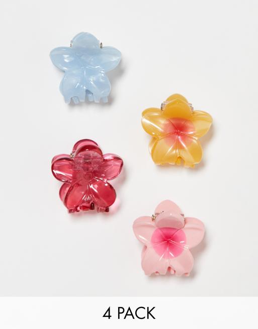 SUI AVA - Flower Power - Pakke med 4 små hårklemmer med blomsterdesign i forskellige farver