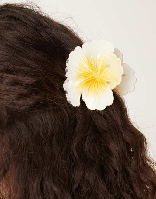 Sui Ava - Gul stor hårklo med Hawaii-blomsterdesign