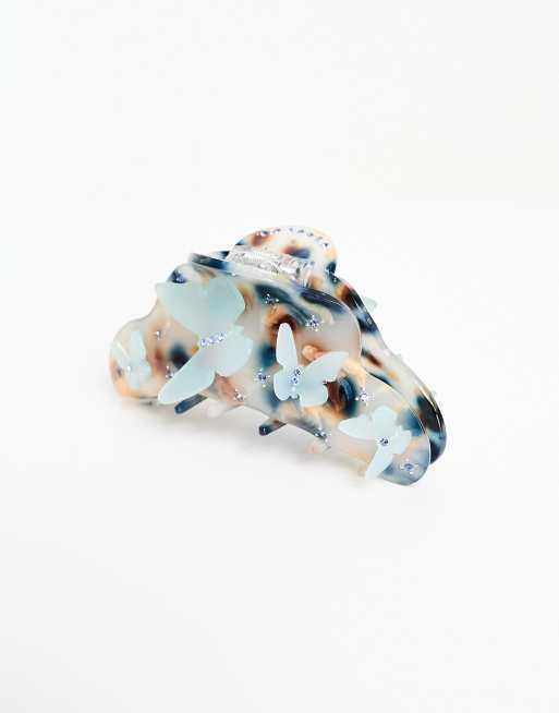 SUI AVA - Lene - Den største hårklemme i blå med sommerfugle