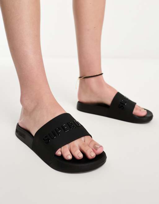 Superdry - Code - Sorte veganervenlige badesandaler til poolen med logo