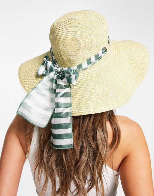 SVNX - Grøn stråhat med flad puld og bomuldsdetalje