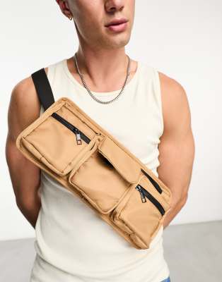 SVNX - Lysebrun bryst-taske i nylon med flere lommer