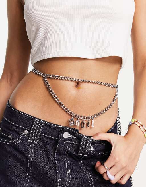 Tammy Girl - Sølvfarvet mavekæde med 'Angel'-vedhæng