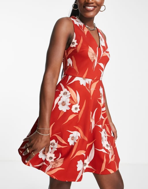 Ted Baker - Enyaa - Rød skater-minikjole med blomstermønster