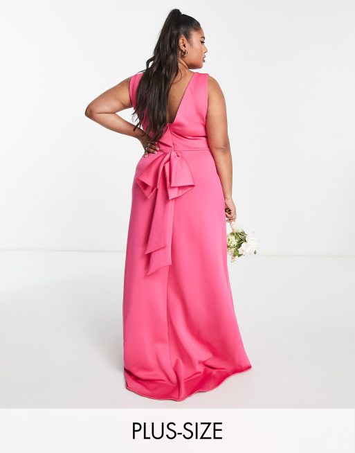 TFNC Plus - Brudepiger - Pink maxikjole med sløjfe bagpå