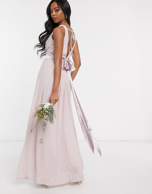 TFNC - bridesmaid - lyserød maxikjole med slå-om og sløjfe bagpå
