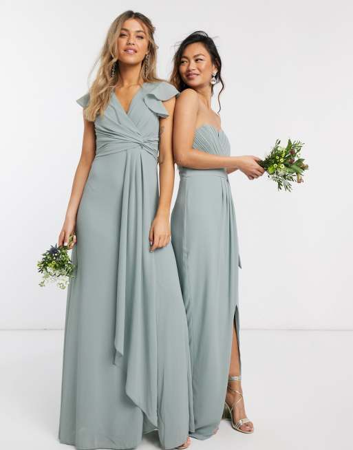 TFNC - Brudepige - Grøn maxikjole med flæsedetalje og flagrende ærmer