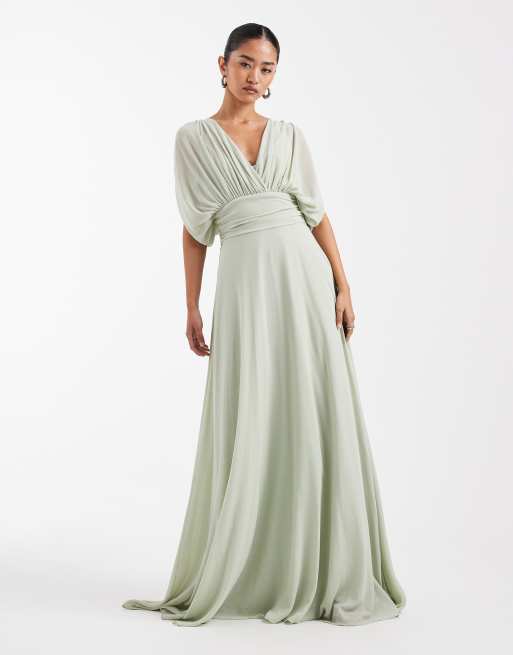 TFNC - Brudepiger - Grøn maxikjole i chiffon med plisseringer