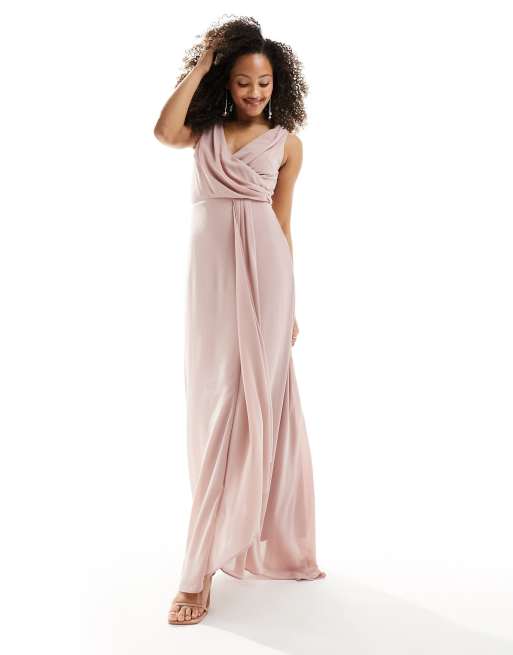 TFNC - Brudepiger - Lyserød maxikjole med slids foran i chiffon
