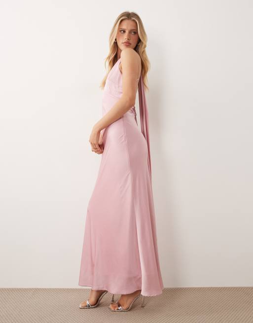 TFNC - Brudepiger - Lyserød maxikjole med V-hals og tørklædedetalje i satin