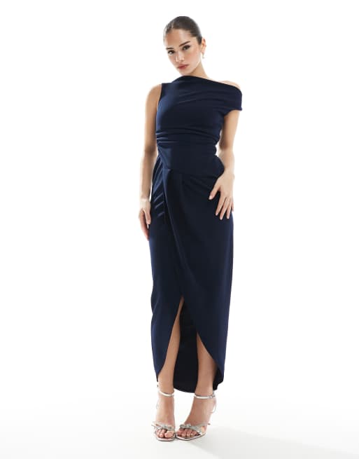 TFNC - Brudepiger - Marineblå maxikjole med halsudskæring og rynkede detaljer