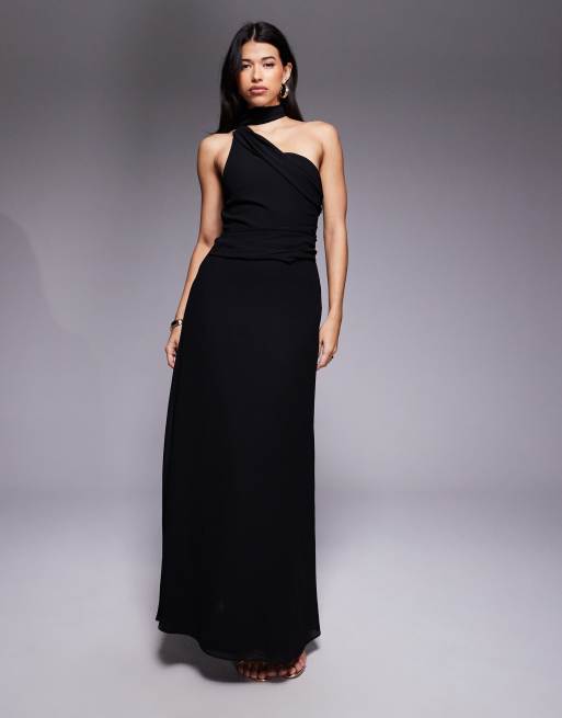 TFNC - Brudepiger - Sort oneshoulder-maxikjole med tørklædedesign i halsen