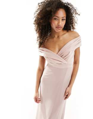 TFNC - Brudepiger - Støvet lyserød og tætsiddende maxikjole med bardotsnit