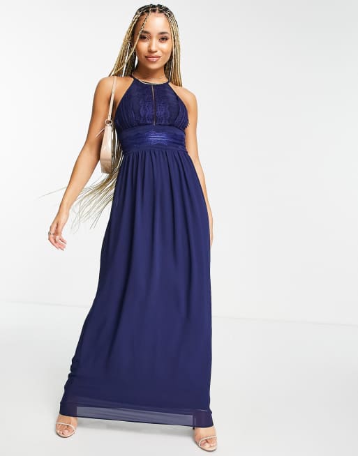TFNC - Plisseret maxikjole i marineblå