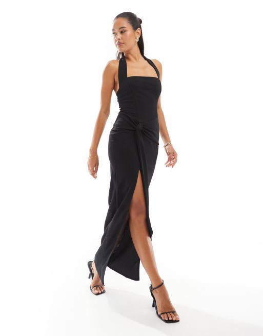 TFNC - Sort maxikjole i crepet stof med firkantet hals og draperinger i taljen