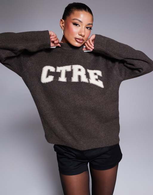 The Couture Club - Brun strikket trøje med 'CTRE'-print