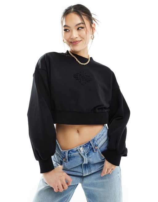 The Couture Club - Cropped sweatshirt med emblem i sort - Del af sæt
