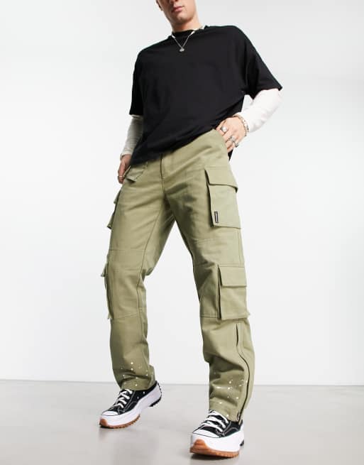 The Couture Club - Khakigrønne cargobukser med lynlåsdetalje - Del af sæt