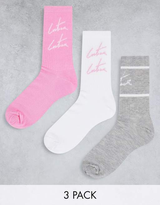 The Couture Club - Pakke med 3 par sportssokker i pink, hvid og grå
