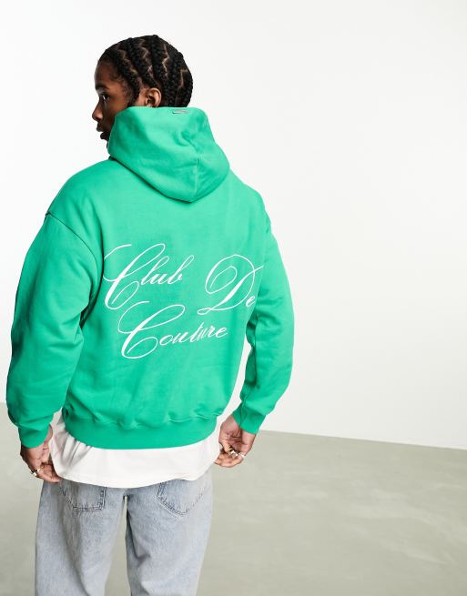 The Couture Club - Pullover-hættetrøje med skriftprint på brystet og ryggen i grøn