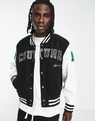 The Couture Club - Sort og hvid bomber-jakke med broderede mærker i college-stil