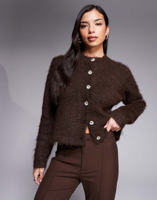 The Frolic - Chokoladebrun cardigan i lodden strik med knapper - Kun hos ASOS
