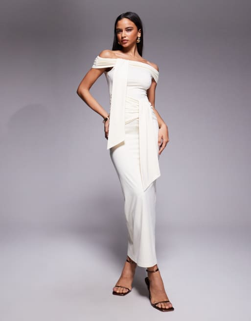 The Frolic - Cremefarvet og stram maxikjole med bardotsnit samt draperingsdetalje - Kun hos ASOS