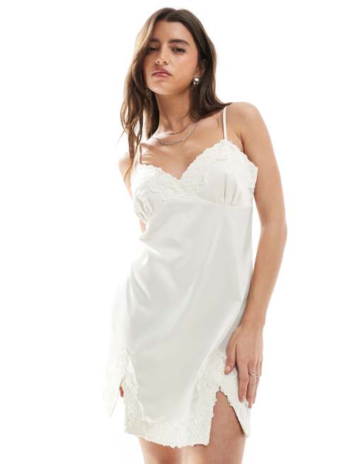 The Frolic - Cremehvid slip-chemise med blondedetaljer i satin - Kun hos ASOS